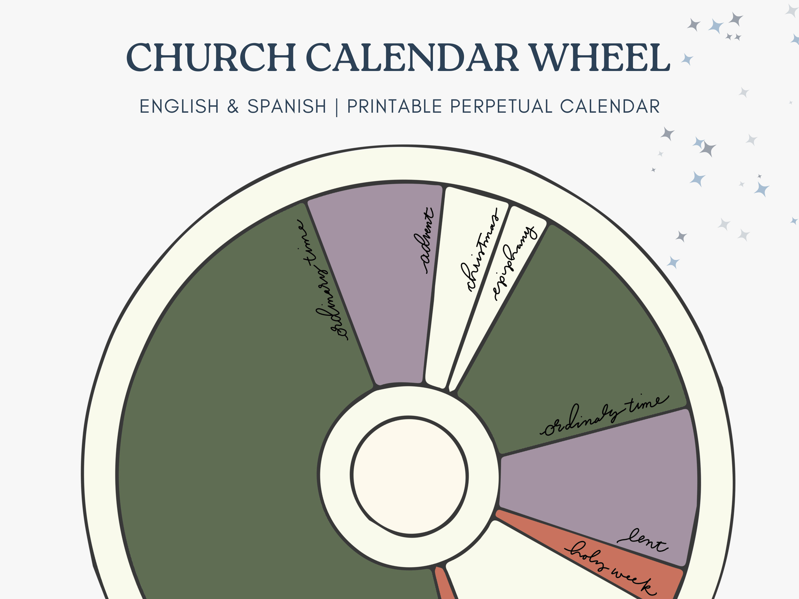 Liturgical Calendar Wheel in Spanish and English Ecumenical